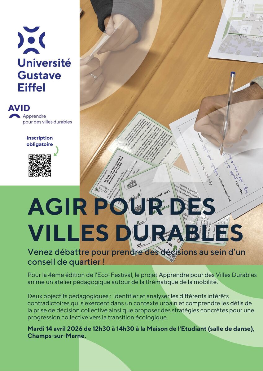 Le projet AViD (Apprendre pour des Villes Durables) animera un atelier pédagogique autour de la thématique de la mobilité :